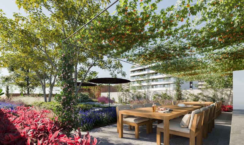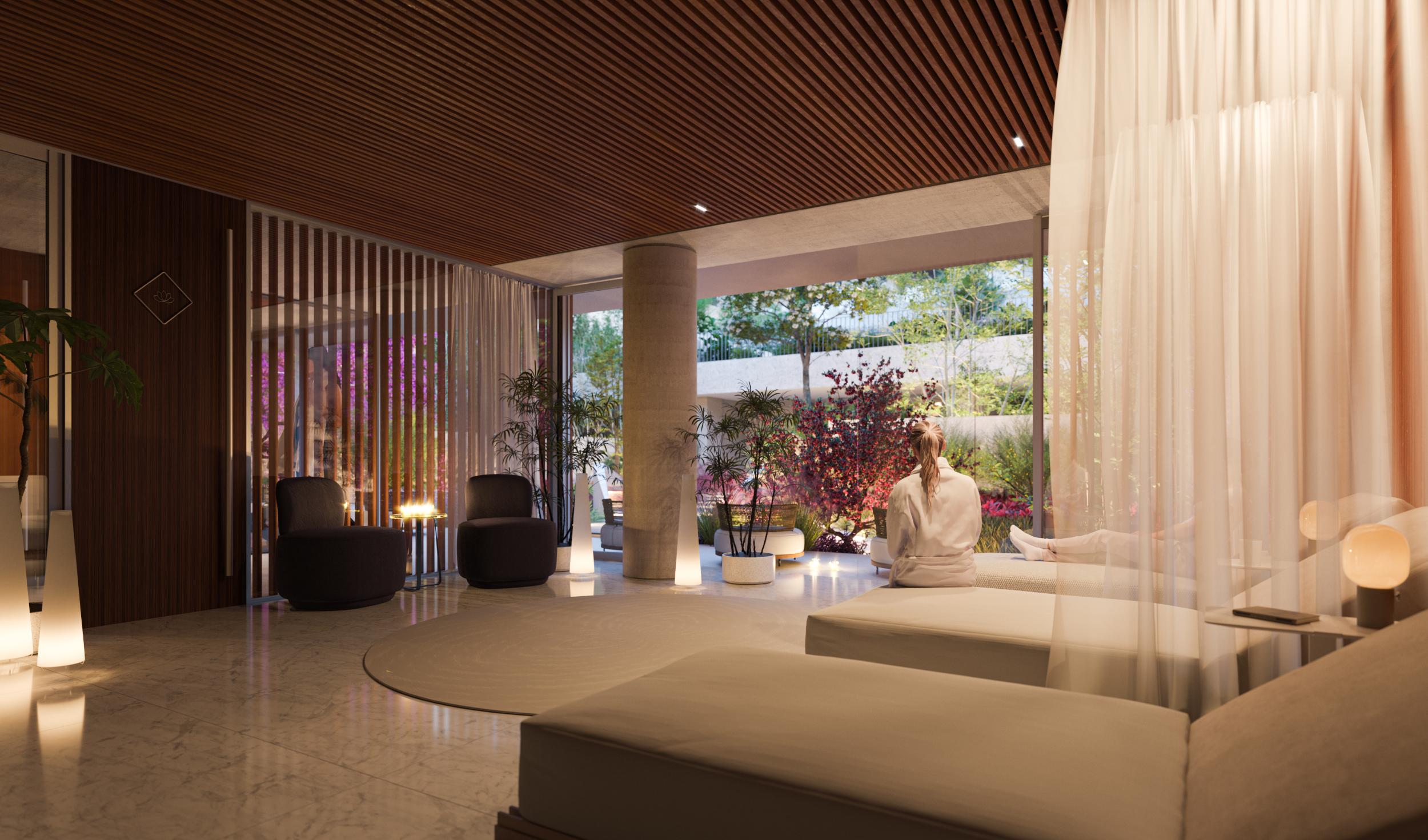 La PB cuenta con un gimnasio, sala de yoga, spa y un sector de relajación, mientras que el primer piso cuenta con un salón de eventos totalmente equipado. Por último, el tercer piso cuenta con una amplia terraza rodeada de vegetación con piscina, solárium, pérgolas y parrilleros.